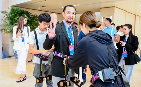 鄂旅股份酷馳科技的工作人員在現場詳細講解外骨骼機器人的功能,并操作展示了機器狗的負重運輸和巡邏警報等文旅場景應用。其中,外骨骼機器人助力登山更是受到眾多與會嘉賓的關注,紛紛試穿體驗。