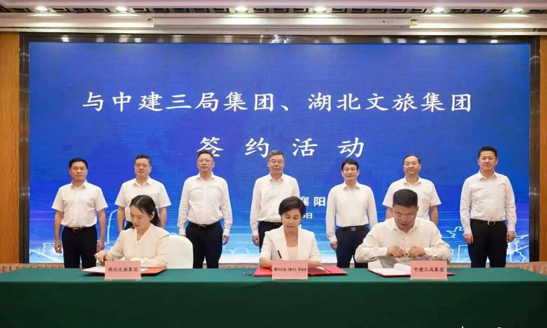 襄陽(yáng)市政府副秘書長(zhǎng)、市文化和旅游局黨組書記,襄陽(yáng)古城(隆中)管理委員會(huì)主任張曉瓊與中建三局城市投資運(yùn)營(yíng)公司負(fù)責(zé)人,湖北文旅集團(tuán)隆中公司負(fù)責(zé)人分別簽約。