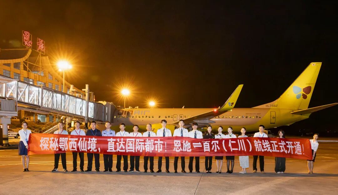9月8日凌晨,韓國真航空LJ885航班平穩降落在恩施許家坪國際機場,標志著恩施?首爾(仁川)國際航線正式通航。這條“空中橋梁”的搭建,不僅縮短了兩地時空距離,更恰逢恩施金秋旅游旺季,為中外游客開啟了便捷的山水探秘之旅。
